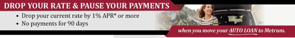 *APR =Annual Percentage Rate. Floor rates do apply, ask a loan officer for details. New money only; existing Metrum Credit Union loans are not eligible. Limited time only. With approved credit.